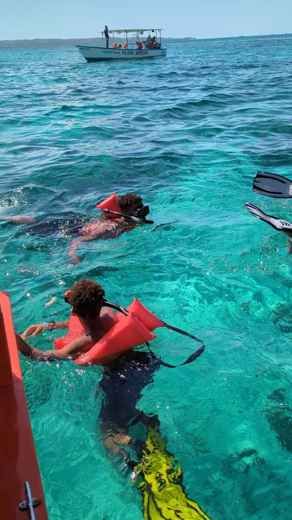 After a relaxing morning, it was time for some adventure. We had pre-arranged a private boat tour that picked us up right at the resort’s beach. The highlight of our trip was snorkeling in the crystal-clear waters. Our kids loved spotting colorful fish and coral, while we adults marveled at the serenity of being out on the water. After snorkeling, the boat crew prepared a delicious lobster feast right on board—a perfect mix of adventure and gourmet dining. We personally used Captain Jace Allen Glass Bottom Tours and it was fantastic!